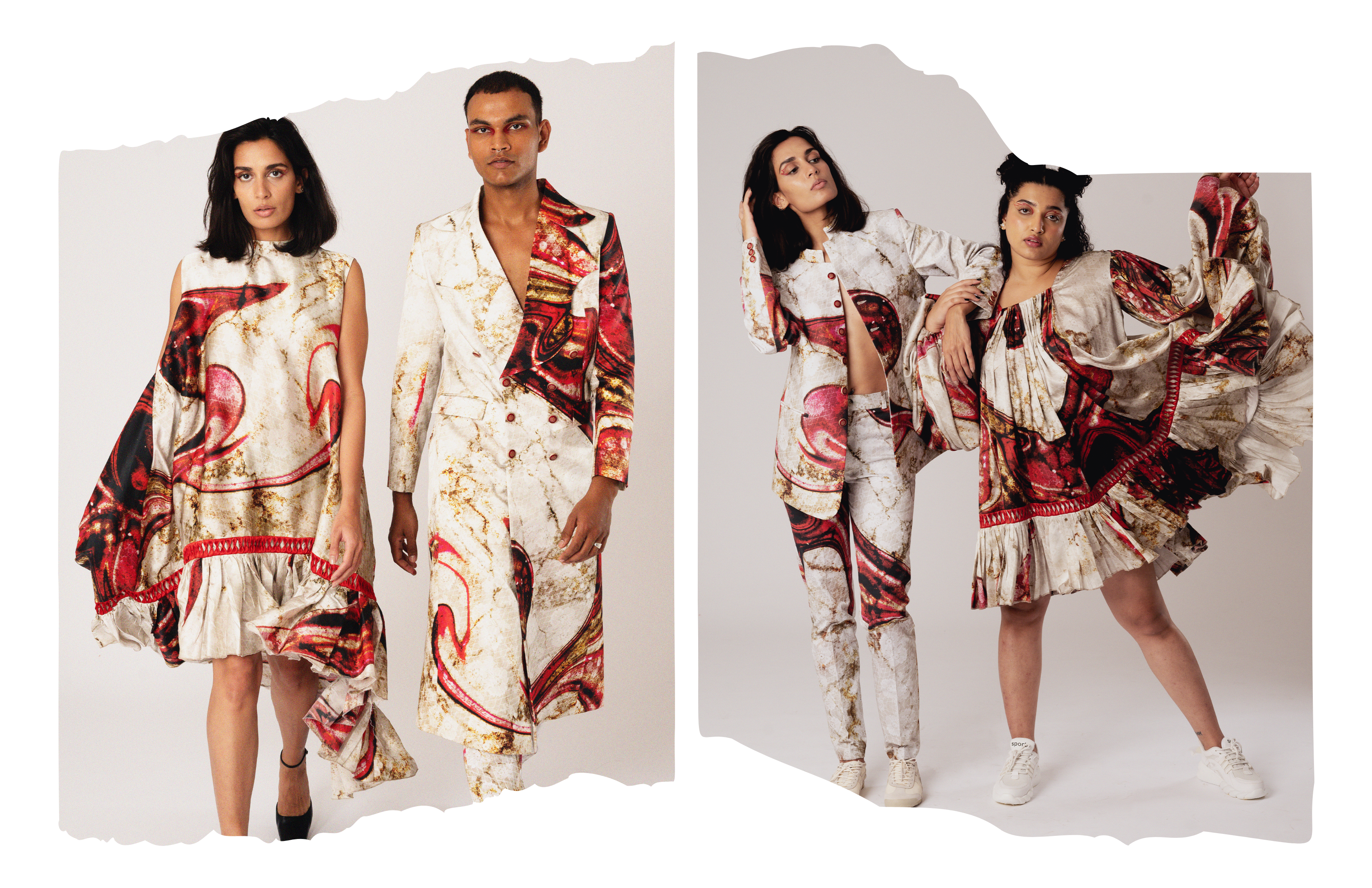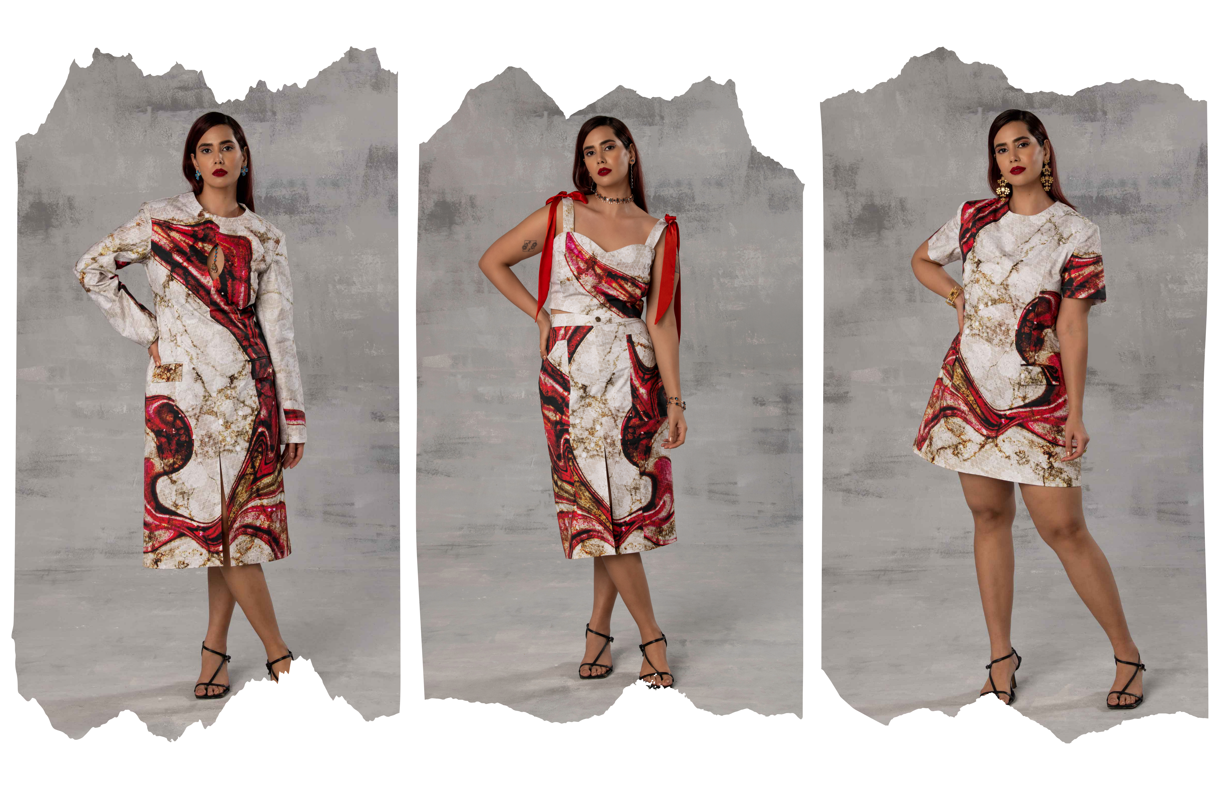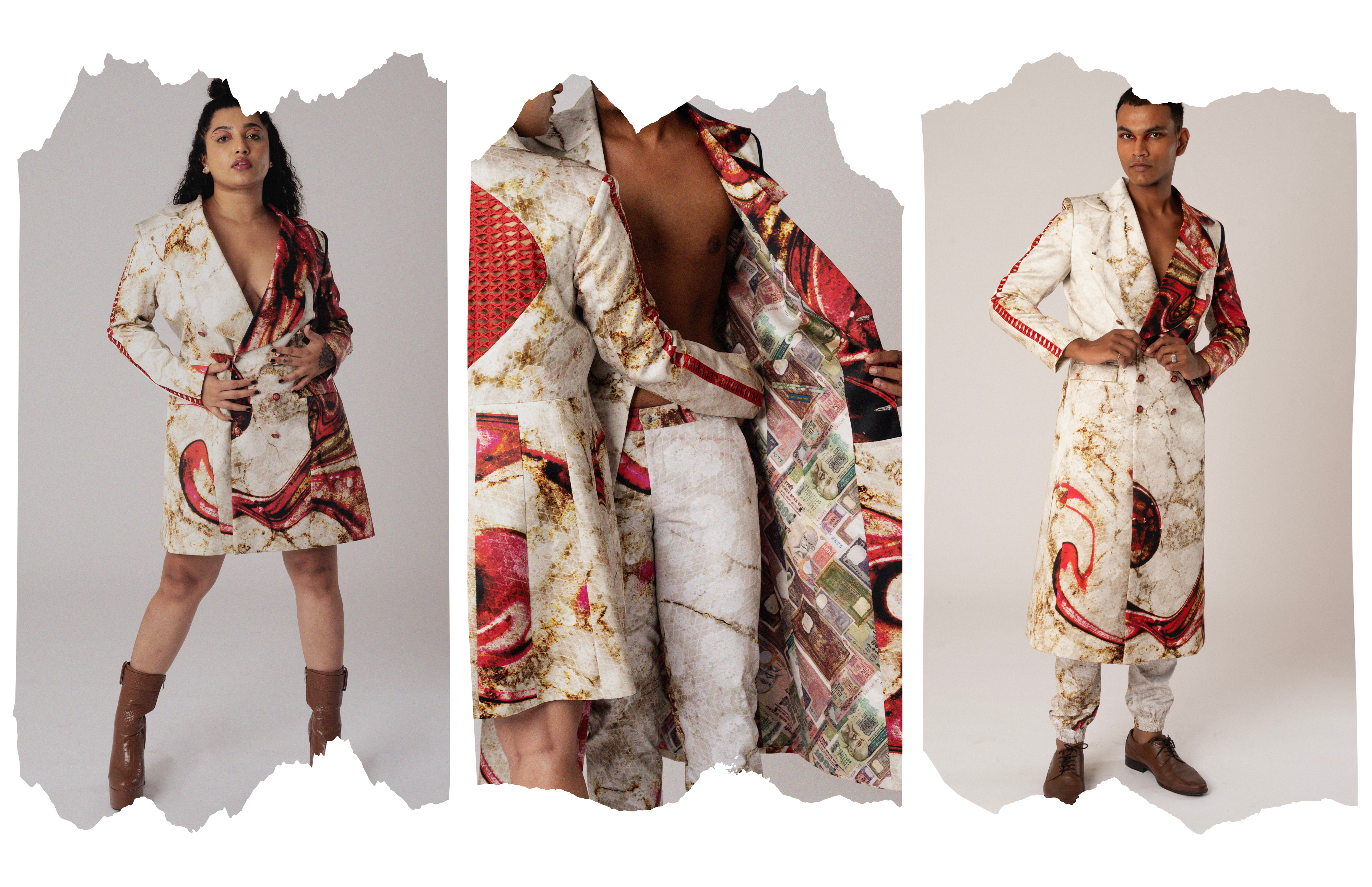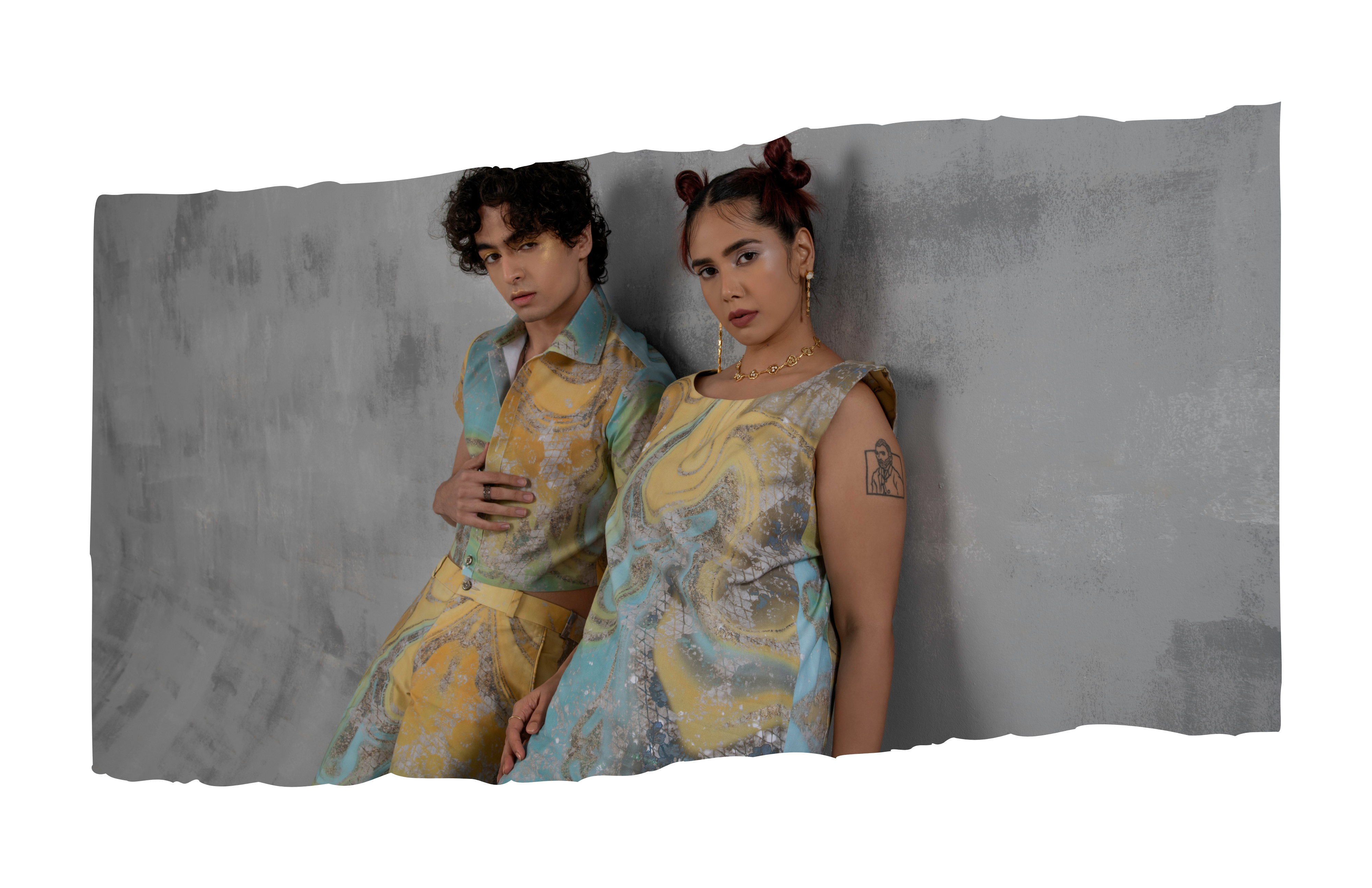 Inspired by the most timeless symbol of love and grandeur - the Taj Mahal, this collection weaves a magical narrative, embodying imperfection and inclusivity. The Taj Mahal, an ageless and historical wonder, guides a spellbinding fashion adventure. Picture the weathered beauty of marble etched into every thread, mirroring the Taj's oxidized textures. Garments express the monument's essence with lace replicating intricate Jalli work and digital marbling prints reflecting its ever-changing colors. Precious and semi-precious stones, reminiscent of Pietra Dura, are woven into the fabric, creating a textured and colorful symphony. Silhouettes transport us to the Mughal era, transcending gender boundaries. The fusion of historical grandeur and modern elegance yields a gender-neutral, all-inclusive fashion dream. The collection's enchanting colors mirror the Taj's transformation from soft pinks at sunrise to brilliant afternoon whites and bronzed-oranges at sunset. Under moonlight, the Taj shimmers with a mesmerizing blue.