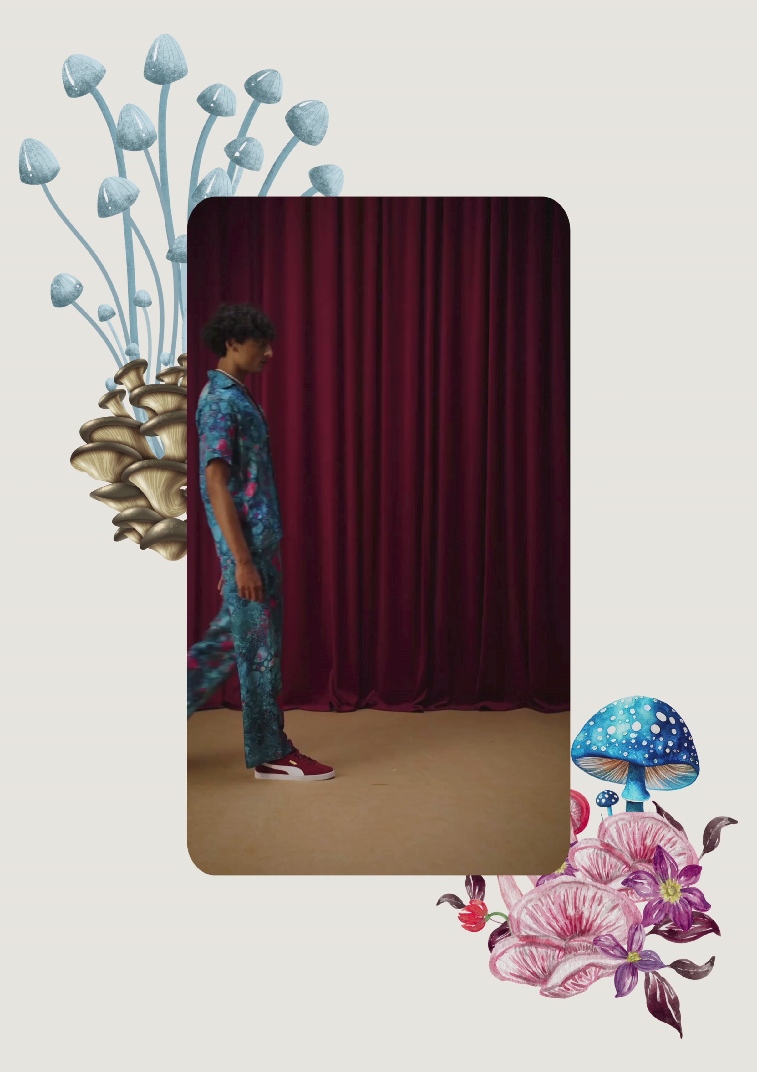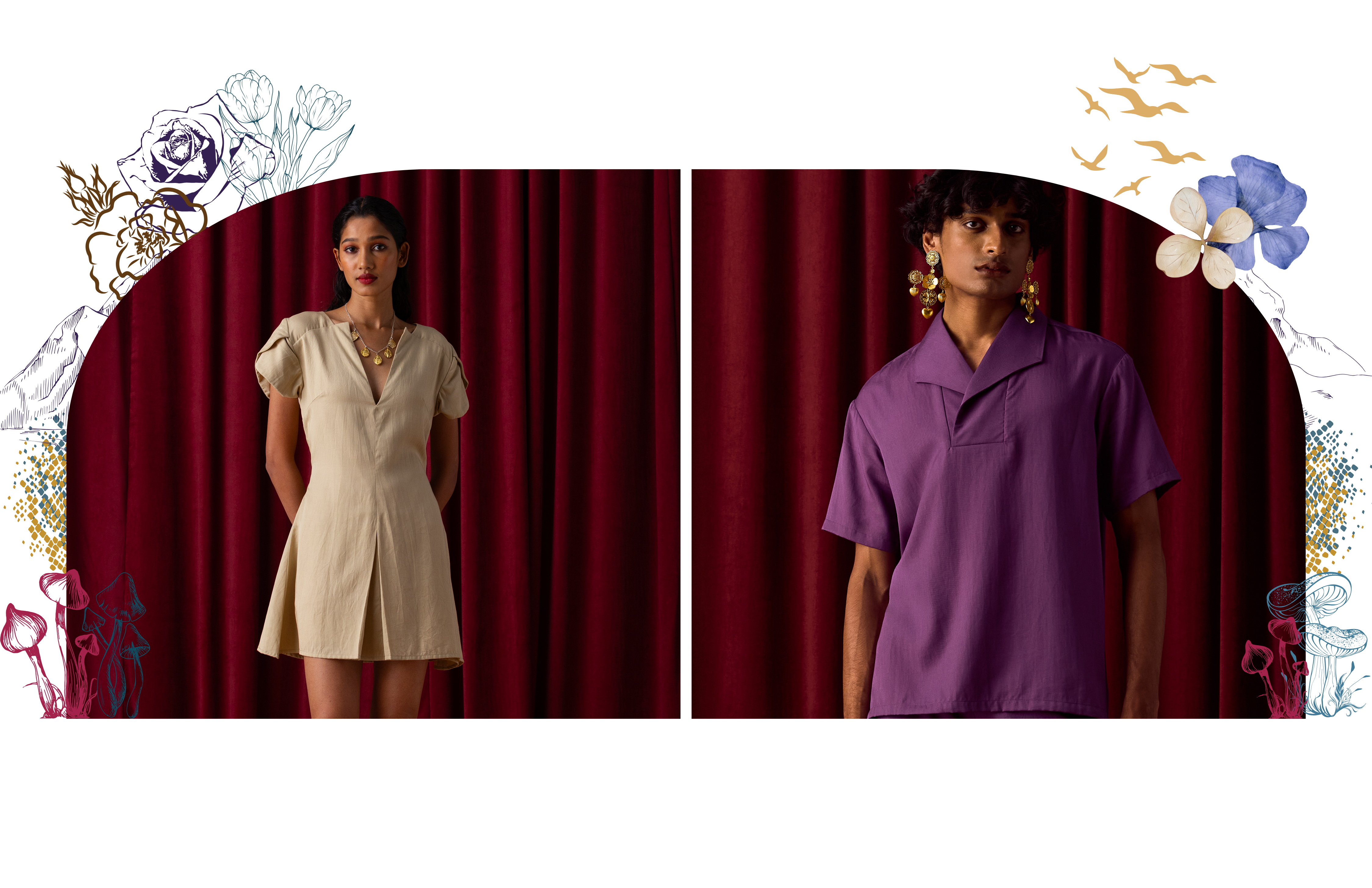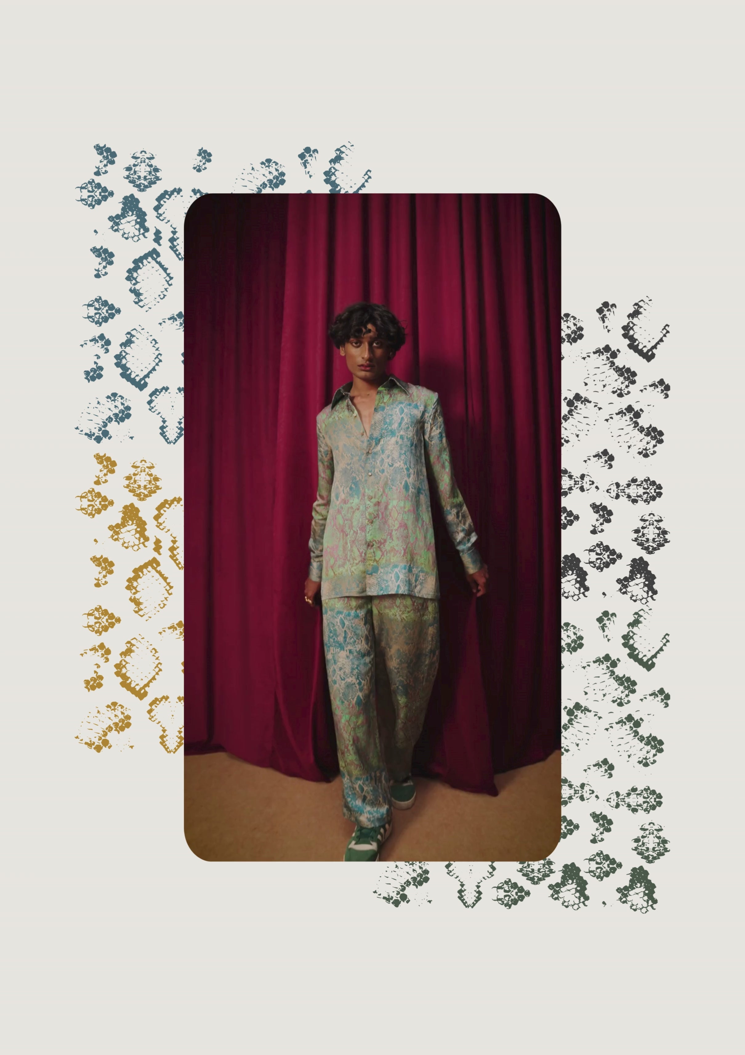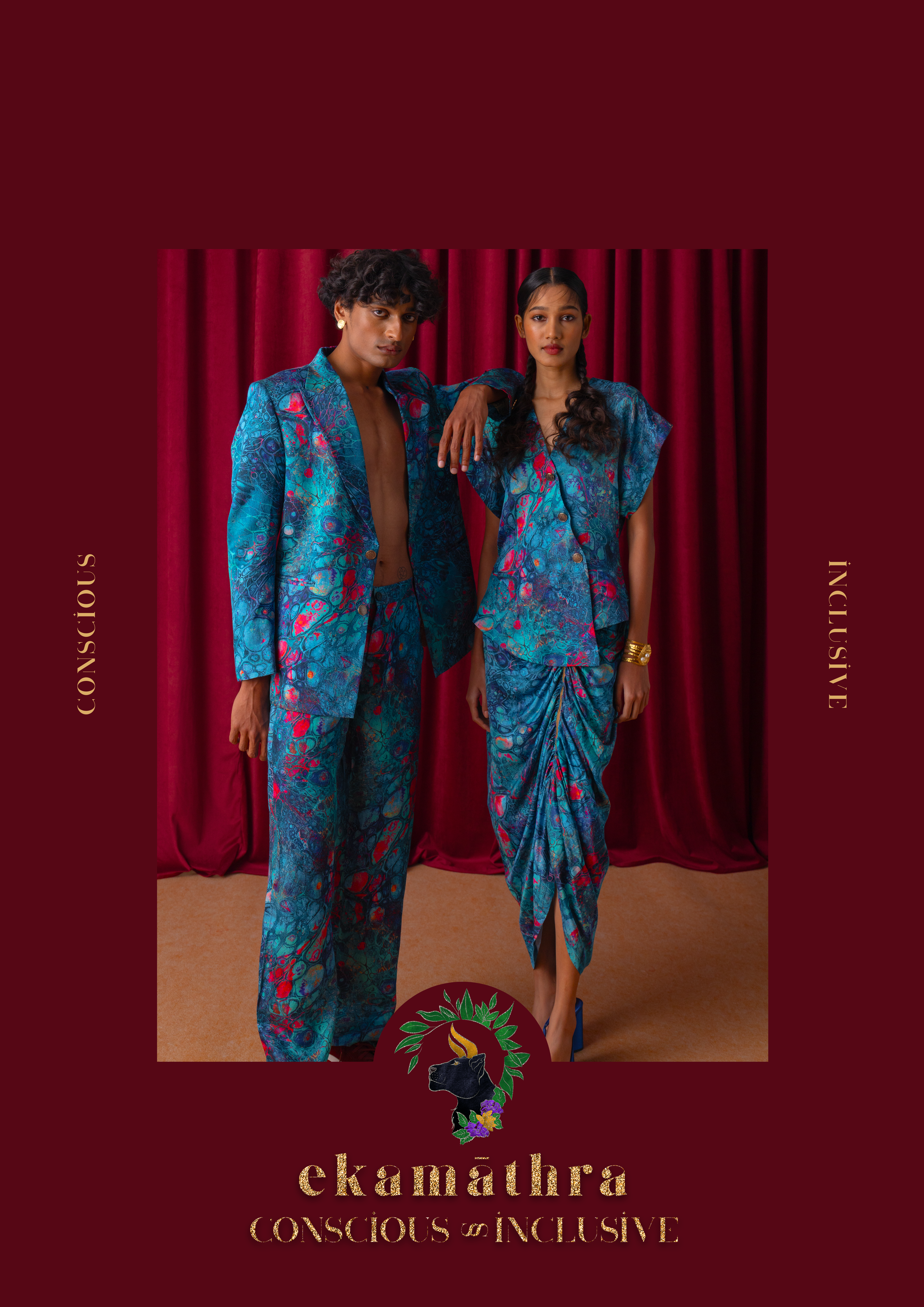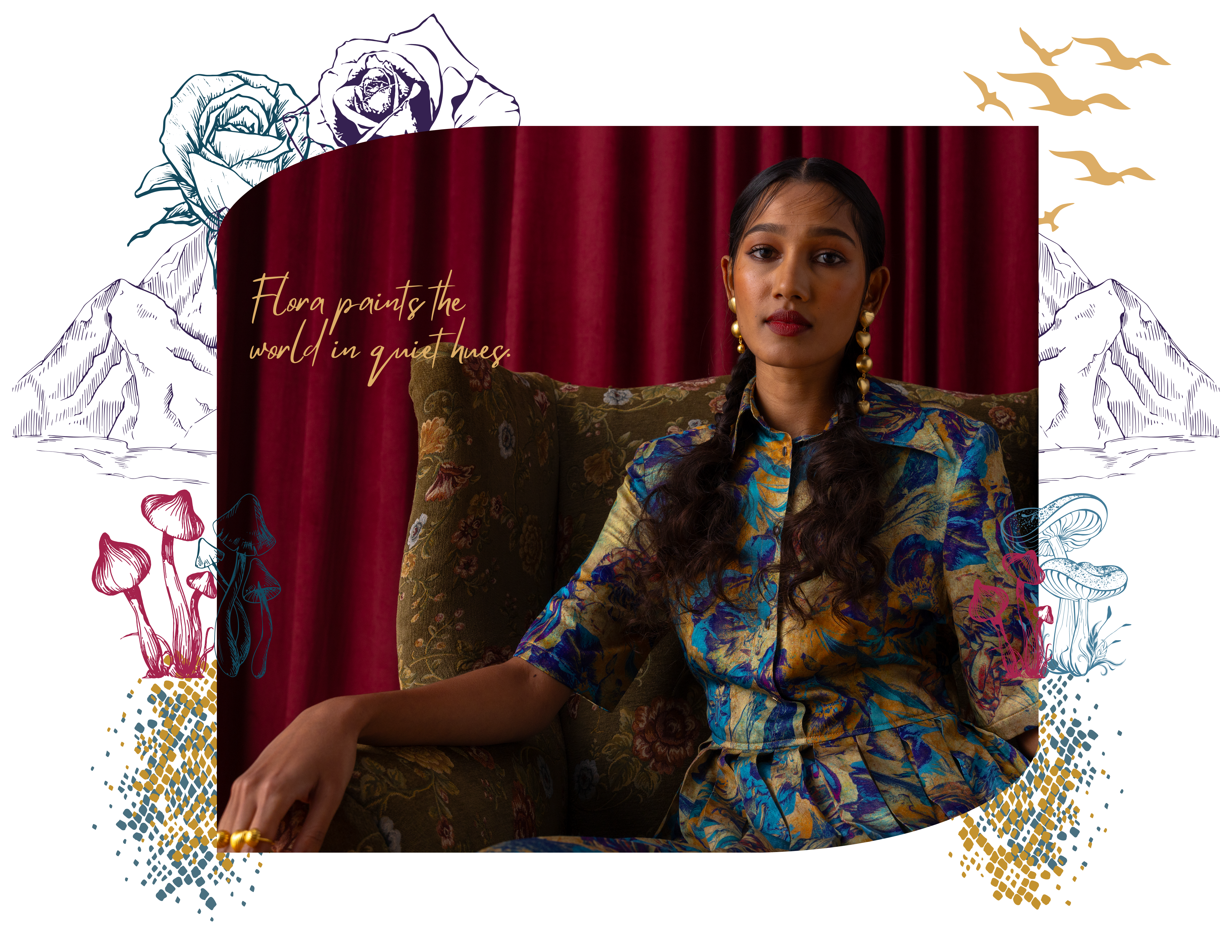 Wildoria takes inspiration from the Nilgiris in India’s Western Ghats, known for its rich biodiversity and scenic landscapes. The collection reimagines this natural world through a blue-green-gold palette that mirrors the region’s forests, mist, and golden light. Each piece reflects the Nilgiris’ essence, floral motifs draw from the blue flowers that bloom during golden hour, while snake-inspired prints capture the fluid elegance of the region’s fauna. Fungi patterns bring in the forest’s nocturnal beauty, adding depth and intrigue. By blending these natural elements with modern design, Wildoria translates the untamed elegance of the Nilgiris into contemporary silhouettes that carry the spirit of its landscape and life.