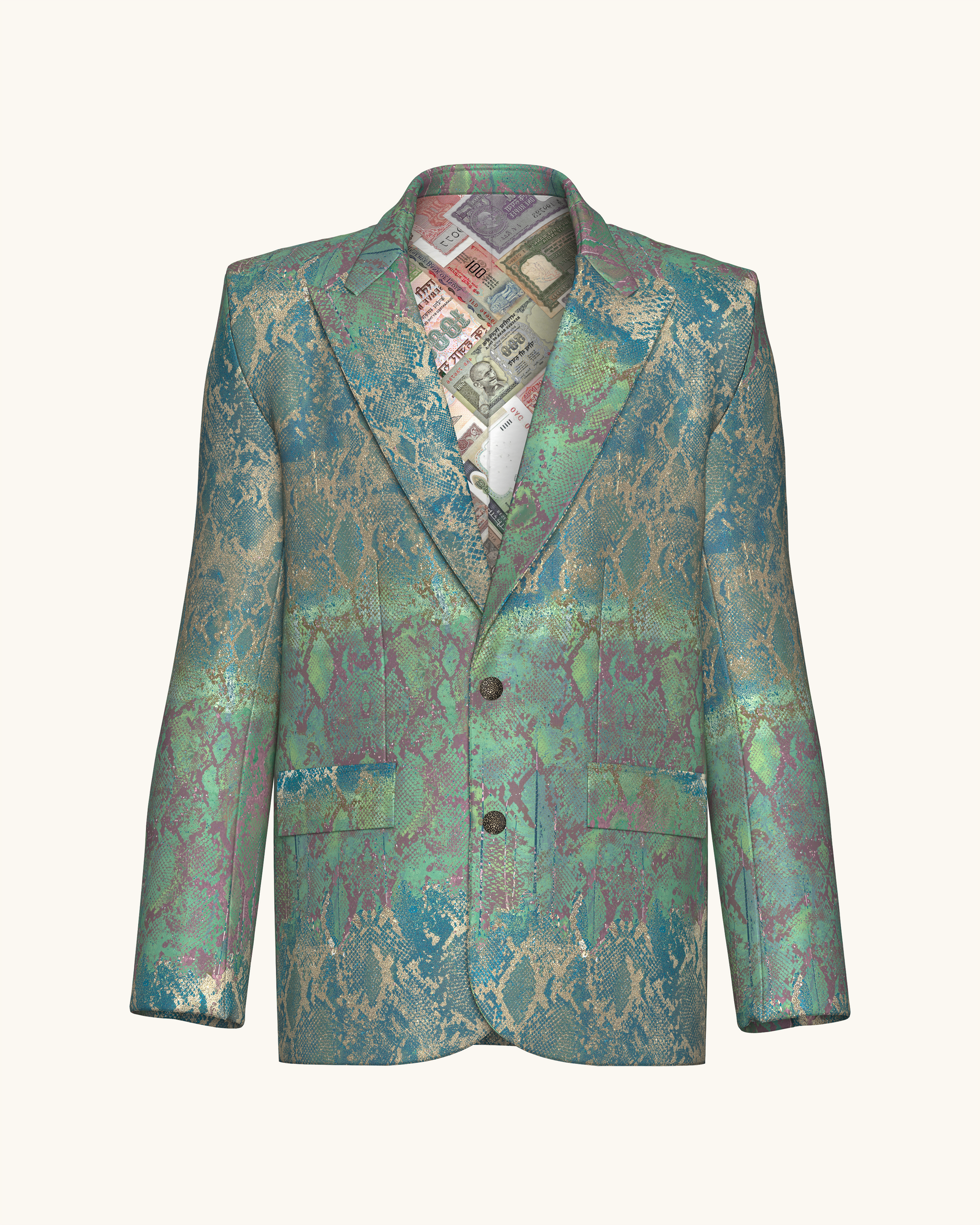 The Fauna Jacket is a tailored single-button blazer that combines sophistication with a relaxed fit. Contoured seams and a peak lapel collar enhance its sharp, structured look, while functional front pockets with flaps add practicality. The long sleeves feature a three-button cuff detail, and a central seam on the back offers a refined finish. Fully lined for a smooth fit, this jacket is not just designed in INDIA, but proudly MADE IN BANGALORE, INDIA.